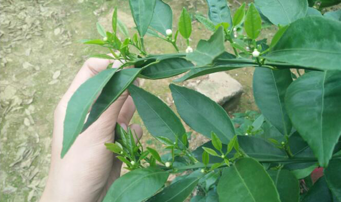 我们再次来到了韦大哥的果地,和上次不同,这次绿绿的柑橘树上带着很多小白点,近看的花很漂亮、花苞大且壮,后面的梢带花也不怎么出了。韦大哥高兴的跟我们说:“你们配的那个肥效果真是太好了!真的很感谢你们。”