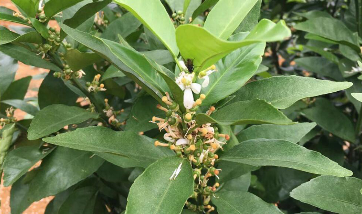 保花保果期间遇阴雨天气,需要主动保花保果、根据柑橘花期果期需肥的特点主动补充关键营养元素(硼、钙、锌、钾)+优质海藻素(解易达),使生殖生长与营养生长处于平衡状态,提高座果率。