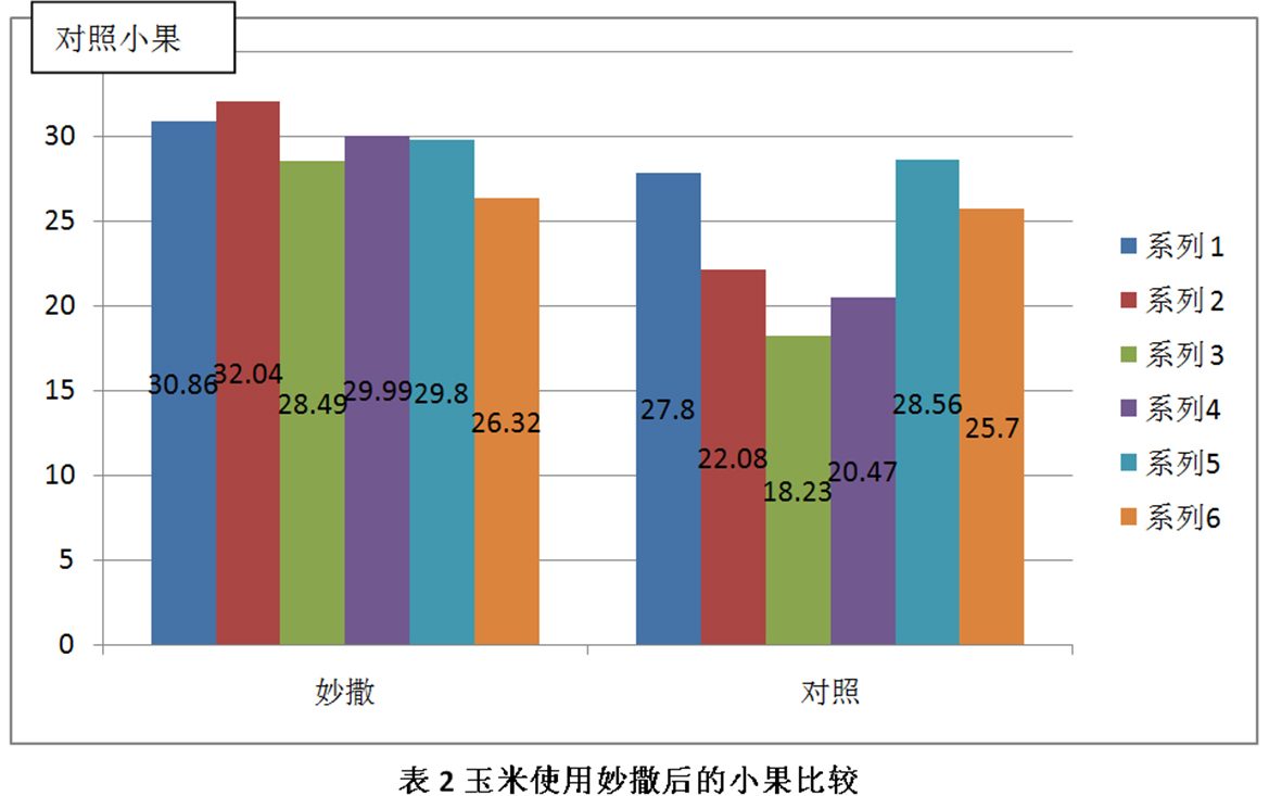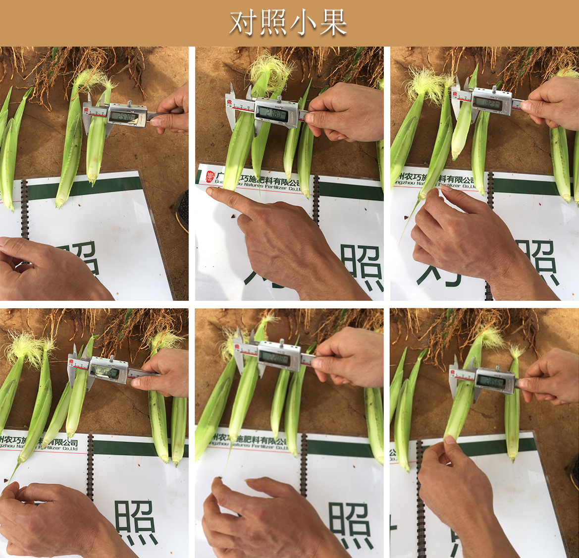 3、小果比较——使用妙撒后的玉米小果生长快,可提早采收。